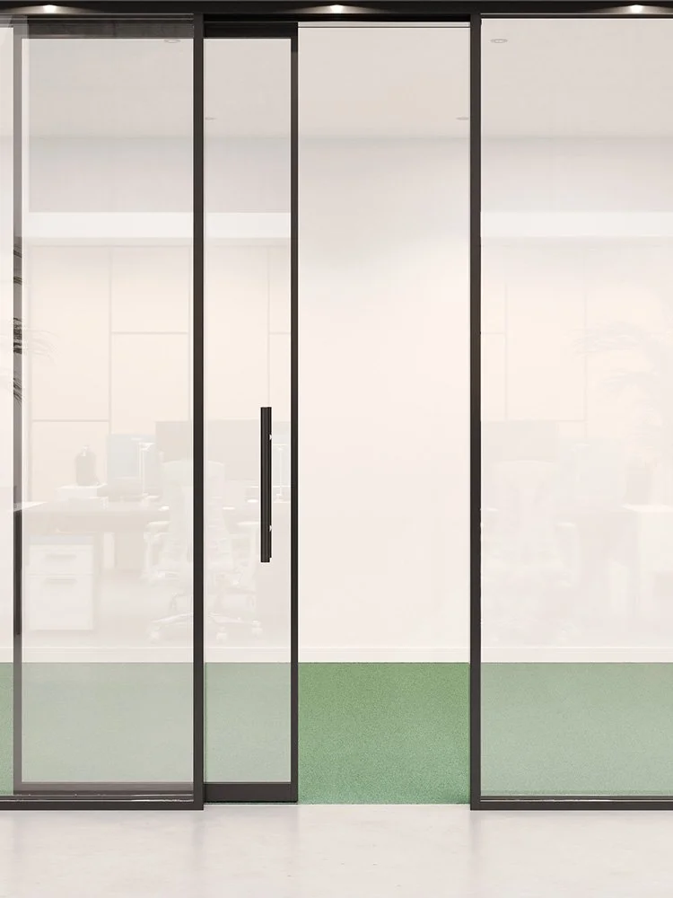 Przesuwne lub skrzydłowe, pojedyncze lub podwójne — nasze drzwi dostępne są w wielu wariantach, dzięki czemu harmonijnie komponują się z nowoczesnymi przestrzeniami biurowymi. Są kompatybilne ze wszystkimi naszymi systemami, zapewniając spójny efekt wizualny oraz pełną funkcjonalność.